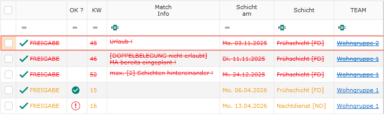 - Dienstplan – Checker: Alle Planungsregeln eingehalten (z.B. gesetzliche Ruhezeiten) ?