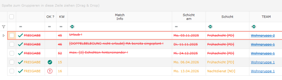 - Freigabe der Schicht und Einplanung in Dienstplan mit Informationen an: