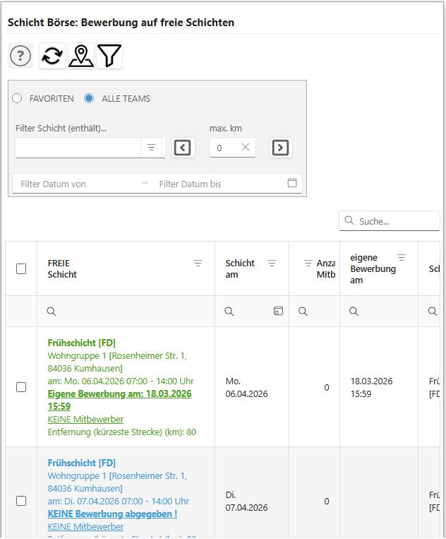 - Planer leitet nicht besetzte Kunden Wünsche an die Schichtbörse für die MA weiter.